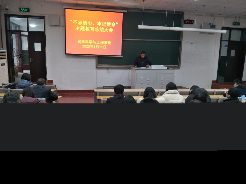 1月11日下午2:30我院在水利馆101召开“不忘初心、牢记使命”主题教育总结大会。此次会议贯彻落实习近平总书记在“不忘初心、牢记使命”主题教育总结大会上的重要讲话精神,贯彻落实教育部直属高校主题教育总结大会精神,贯彻落实我校主题教育工作的具体安排,全面总结伟德国际1946bv官网开展“不忘初心、牢记使命”主题教育的具体工作和主要成效,并安排部署进一步巩固和深化主题教育成果的工作重点。会议由院党委书记陈毓陵主持,并作总结报告。研工部李枫部长、党委巡查办公室秘书刘峰老师出席了此次会议,并有全院教职工及学生党员参加。