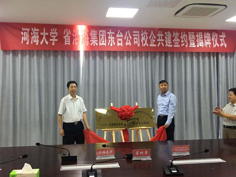 6月19日,我院与江苏省沿海集团东台公司举行产学研合作签约暨生态盐土农业研究基地与教学实习基地揭牌仪式。江苏省沿海集团东台公司殷建祥总经理,端敏副总经理,工程部陈杰峰经理,河海大学农工院朱成立副院长、徐俊增副院长、郭相平教授、陈立华副教授,江苏省农业农村厅耕地质量与农业环境保护站殷广德首席专家,南京农业大学赵耕毛教授等人出席揭牌仪式。朱成立副院长与殷建祥总经理分别致辞并共同为生态盐土农业研究基地与教学实习基地揭牌,朱成立副院长与端敏副总经理签署合作协议。