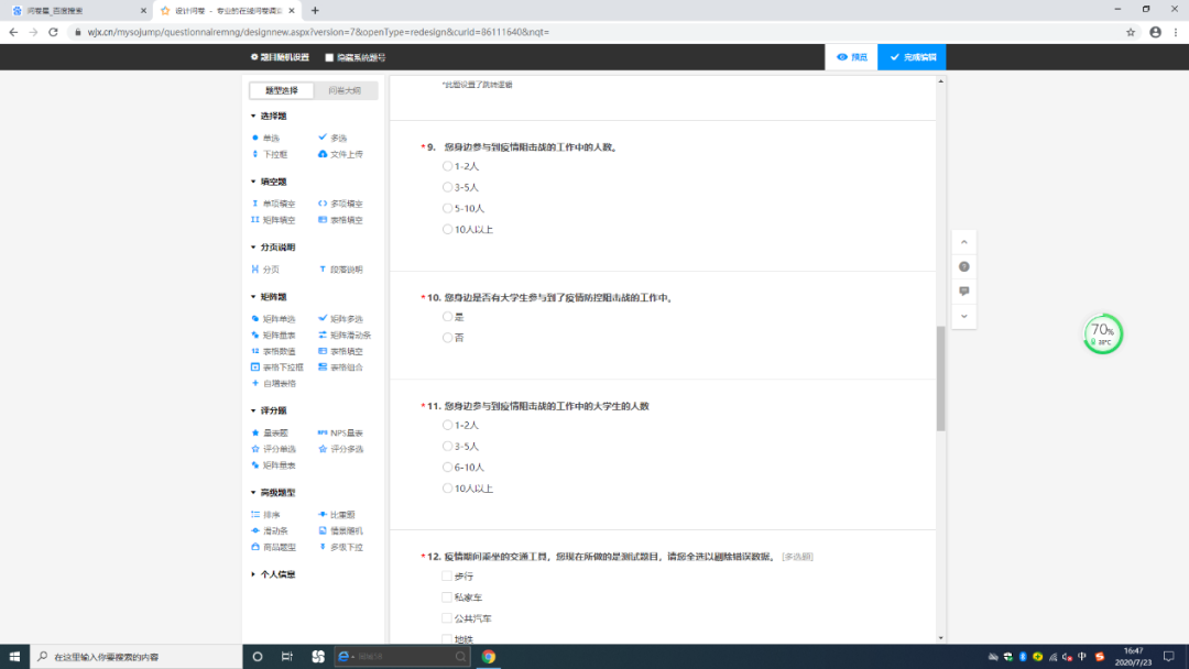 通过该调研得知,疫情期间,我国的社会动员较为广泛,成功动员了较多的人员参与到了疫情防控阻击战中,大学生群体同样如此,不过也存在着大学生贡献机会较少等问题。经过疫情检验,我国在疫情中的动员取得了良好的效果,对于有效控制我国疫情,保障人民身体健康,起到重大的作用。
