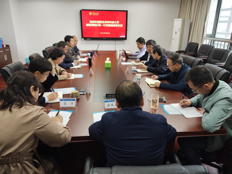 4月22日,西北农林科技大学胡笑涛院长一行来院调研,院党委书记陈毓陵、院长陈菁会见来宾,院领导班子其他成员、院二级机构负责人参加了调研座谈会。
