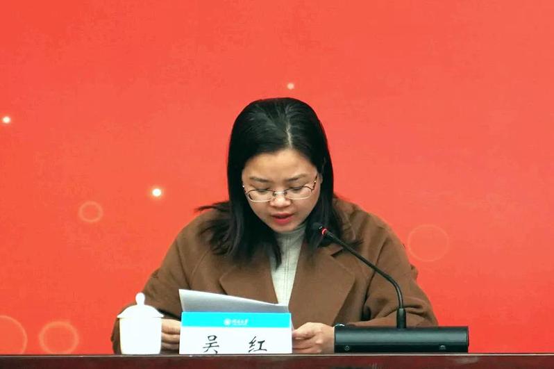 学生处处长吴红宣读安徽邦泰优秀学生奖学金获奖名单。
