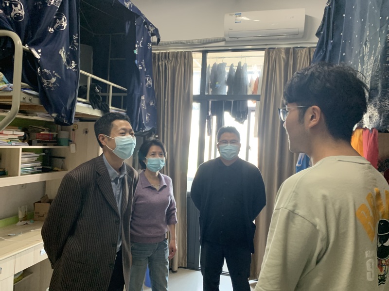 疫情无情人有情,亲切关怀暖人心。为进一步做好校园封闭管理期间学生教育管理与服务工作,推进“我为群众办实事”实践活动走深走实,近期,学校领导和伟德国际1946bv官网领导纷纷走进学生当中,通过与学生代表座谈、走访学生宿舍等方式,倾听学生心声,掌握学生的思想动态,了解学习生活等方面的诉求,回应和解决同学们关切的问题,为学生疫情期间提供全面保障。