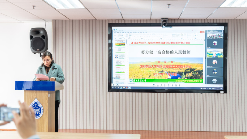 2022年11月16日上午,沈阳农业大学李天来院士受邀为我院师生做了题为《努力做一名合格的人民教师》的线上专题报告,报告会由副院长张洁教授主持,农工院师生在行政楼C502会议室进行了集体观摩。