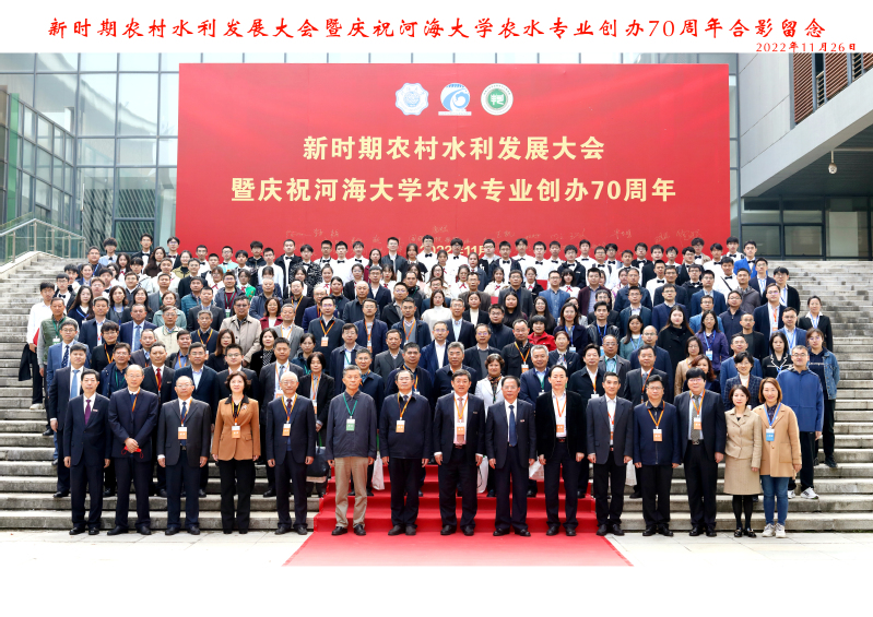 11月26日,新时期农村水利发展大会暨庆祝河海大学农水专业创办七十周年大会在江宁校区文体中心举行。中国工程院院士、教育部农业工程教指委主任康绍忠,中国工程院院士王超,中国工程院院士钮新强,西北农林科技大学校长吴普特,水利部农村水利水电司司长陈明忠,东北农业大学校长付强,中国南水北调集团有限公司党组副书记、副总经理于合群,南京水利科学研究院院长陈生水,河海大学校长徐辉,国家发展与改革委员会农村经济司原司长高俊才,江苏省自然资源厅副厅长孙卫东,江苏省农业农村厅二级巡视员巫建华,江苏省无锡市人民政府副市长张立军,水利部太湖流域管理局副局长戴甦,中国南水北调集团水务投资有限公司总工程师王亦斌,南京林业大学副校长缪子梅,中国节能环保集团有限公司总工程师兼中节能工程技术研究院院长邹结富,江苏南京国家农业高新技术产业示范区副主任张震宇,南京市水利局原局长王凯,河海大学副校长徐卫亚,河海大学副校长张兵,河海大学党委副书记、纪委书记孟新出席大会。兄弟高校、科研院所、行业单位、海内外校友、校内职能部门及兄弟伟德国际1946bv官网负责人、伟德国际1946bv官网师生以线上线下相结合的方式参加了本次大会。大会由伟德国际1946bv官网党委书记朱成立主持。