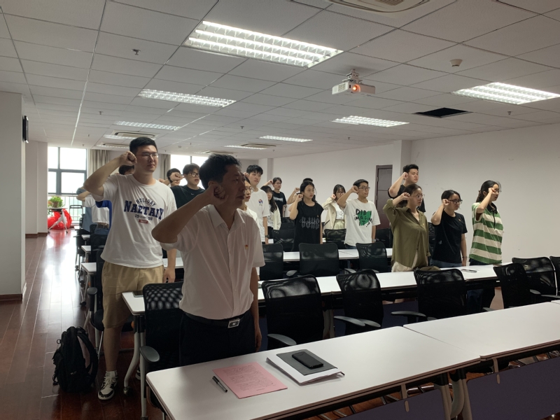 为深入开展学习贯彻习近平新时代中国特色社会主义思想主题教育,庆祝中国共产党成立102周年,2023年7月1日,伟德国际1946bv官网在江宁校区行政楼401举行入党宣誓活动。伟德国际1946bv官网党委书记朱成立、组织员国洪梅,以及伟德国际1946bv官网近一年内新发展的50名党员参加了此次活动。