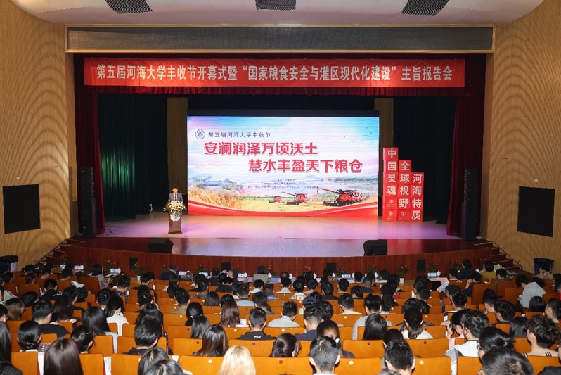 10月15日,在第43个世界粮食日来临之际,由伟德国际1946bv官网承办、江苏省水利学会农村水利专业委员会、江苏省灌区联盟协办的第五届河海大学丰收节开幕式暨“国家粮食安全与灌区现代化建设”主旨报告会在江宁文体中心小剧场隆重举行。河海大学党委副书记、纪委书记孟新、国家发展和改革委员会农村经济司原司长高俊才、河海大学原校长徐辉、中国灌溉排水发展中心总工程师姚彬、江苏省水利厅农村水利与水土保持处处长沈建强、南京市水利规划设计院股份有限公司董事长徐惠民、江苏省水利学会农村水利专业委员会主任、伟德国际1946bv官网原院长陈菁、学校相关职能部门负责人、以及伟德国际1946bv官网领导和师生出席了本次活动。开幕式由伟德国际1946bv官网院长徐俊增主持。