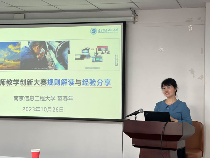 2023年10月26日下午,南京信息工程大学范春年副教授受邀为我院教师做了题为《高校教师教学创新大赛规则解读与经验分享----以<数字图像处理>课程为例》的专题报告,报告会由副院长张洁教授主持,伟德国际1946bv官网党委书记朱成立列席,农工院全体骨干教师出席了报告会。
