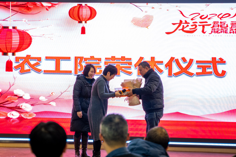 联欢会上增加了荣休仪式环节,主持人宣读退休教师陈毓陵和张齐兴两位老师的个人简介,徐俊增院长发表感谢致辞,代表伟德国际1946bv官网衷心祝愿两位老师心情舒畅、荣休快乐,郑润副书记和张洁院长为陈毓陵老师献花并送上荣休礼物,最后冯建刚老师代表项目组为陈毓陵老师颁发荣休勋章。紧接着,牟童老师的一首《向天再借五百年》表达了对荣休教师们的依依不舍和深切祝福。