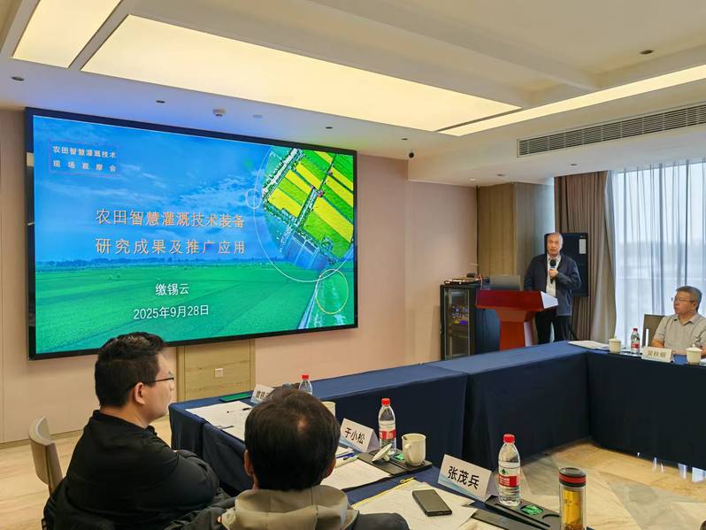 9月28日下午,在现场观摩后开展了农田智慧灌溉技术专题研讨,交流了当前智慧灌溉技术的创新成果和成效,以及高标准农田领域先进技术推广应用的有益经验和创新做法。研讨会上,河海大学教授、江苏省农业资源开发学会副理事长缴锡云做了题为“农田智慧灌溉技术装备研究成果及推广应用”的报告,对农田智慧灌溉的感知-认知-决策-控制闭环路径和创新技术应用进行了全面阐述。随即与会代表对当前智慧灌溉技术和现场观摩的成果展开了热烈讨论与交流,肯定了当前农田智慧灌溉技术的发展,对今后智慧化、绿色化的农田建设提出了更高要求。