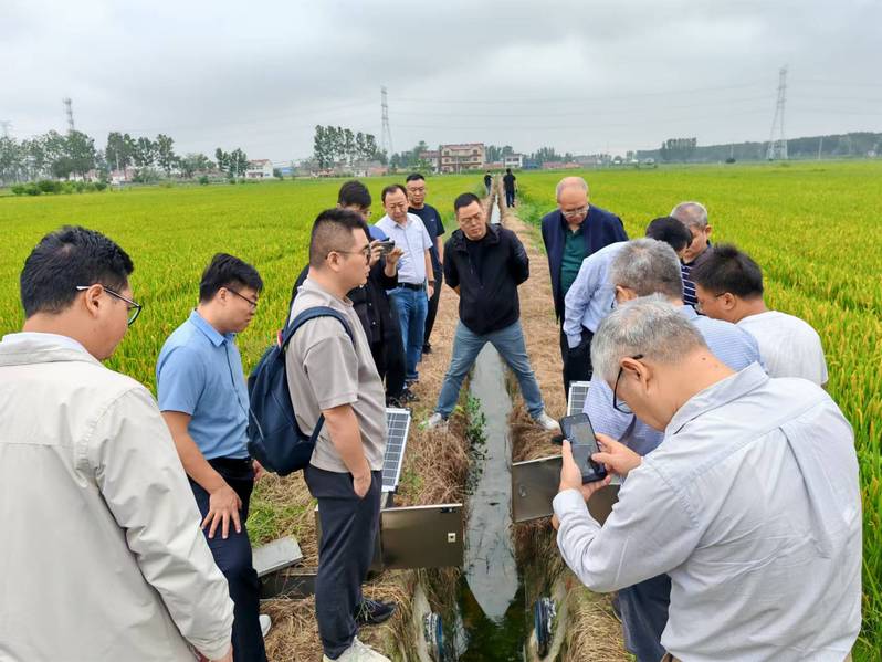 现场观摩期间,参会领导和与会代表深入田间地头,分别于9月27日下午和28日上午参观了涟水县西蒋村和响水县南河镇高标准农田智慧灌溉系统建设情况,查看了团队研发的新型田间智能设备和智慧管理平台运行情况,包括渠道闸门、田间灌水口、田间排水口、田间水位计、渠道流量计、自动化泵站和智慧农田管控云平台等,团队成员讲解了各设备的运行原理并进行了软硬件的远程操作展示。