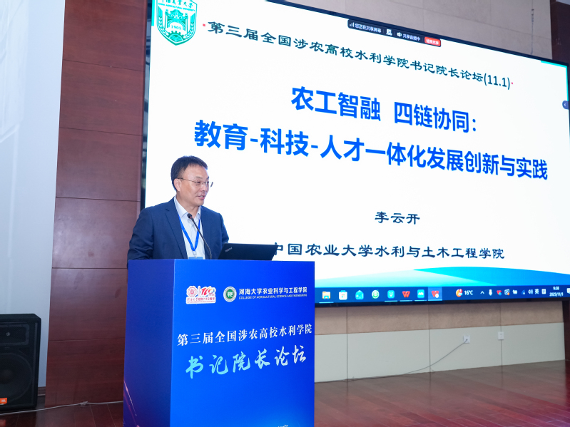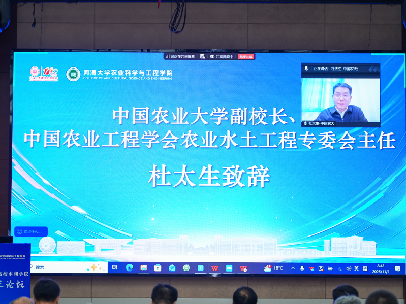 杜太生在致辞中指出,水利是现代农业发展的命脉,水利人才的培养质量直接关系到农业农村现代化建设、关系到中国式现代化的全局。涉农高校要认真学习贯彻习近平总书记给中国农业大学全体师生的重要回信精神,弘扬优良办学传统,矢志强农报国,努力培养更多知农爱农的专业人才,产出更多原创性、引领性科技成果。他表示,在国家“十四五”收官和“十五五”谋划的关键之年组织召开本届论坛,具有重要意义。面对新形势新要求,论坛应聚焦关键议题,积极回应深化教育教学改革,加强农业科技创新和成果转化应用等方面的时代需求。他强调,涉农高校应进一步深化合作,以兴农强农为己任,共同为建设农业强国、推进中国式现代化作出新的贡献。