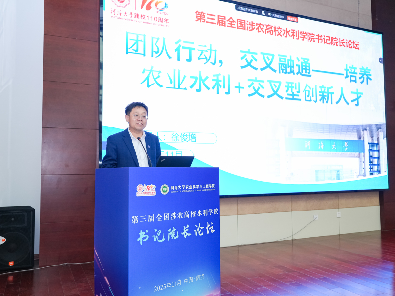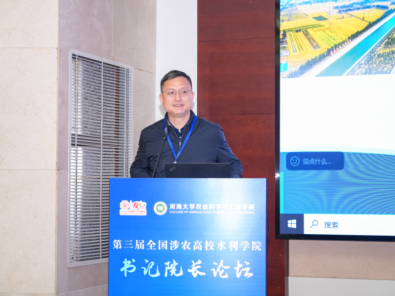 吴峰代表学校向出席论坛的领导和嘉宾表示欢迎。他在致辞中回顾了河海大学110年的办学历程,介绍了伟德国际1946bv官网积极响应新农科和新工科建设,依托学校水利学科优势,深入推进“农工融合”,在人才培养、科学研究和社会服务等方面取得的进展。他强调,党的二十届四中全会明确提出要坚持把解决好“三农”问题作为全党工作的重中之重,农业水利学科肩负着保障国家粮食安全、推动农业绿色低碳转型、服务生态文明建设的重大使命。在当前国家推进农业农村现代化的关键时期,他希望以本届论坛为契机,推动高校在人才培养方案优化、课程体系革新、产学研协同育人等方面加强务实合作,共同为农业水利科技创新与高质量发展贡献智慧与力量。