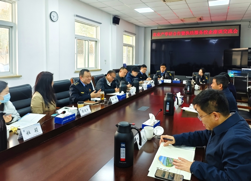 与苏州市农业综合行政执法支队、苏州市农业科伟德国际1946bv官网、倍思特食品有限公司、苏州久富农机有限公司、安佑生物科技集团研究院、苏州东山茶厂股份有限公司、江苏育成禾集农业科技发展有限公司等单位的座谈交流会,由苏州市农业综合行政执法支队支队长邱峰主持。他高度评价了伟德国际1946bv官网办学成果,希望进一步深化产学研融合,共同探索人才培养新路径。各单位负责同志分别介绍了企业发展现状与技术创新方向,并围绕人才培养模式改革、科研项目联合攻关、科技成果转移转化等方面展开深入探讨。大家一致表示将充分发挥各自优势,加强深层次校企合作,以人才共育、科技创新服务地方经济社会发展。