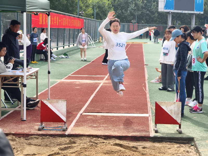 在随后的比赛项目中,伟德国际1946bv官网师生健儿们奋勇拼搏,挑战自我,取得了好成绩。教工组中,国洪梅老师在青年女子铅球项目中奋勇争先,摘得银牌;刘笑吟老师在青年女子跳高项目中获得第4名的好成绩;陈盛老师在青年男子铅球项目中获得第6名;王策老师、余正洪老师在青年男子跳远项目中凭借出色的发挥分获第5名和第7名;陈盛老师、卫琦老师在青年男子跳高项目中分获第6名和第8名;褚琳琳老师、夏继红老师在教工1000米项目、孟天竹老师在女子100米项目、王孟浩老师在男子1500米项目中都取得了第8名的成绩,展现了伟德国际1946bv官网教师们的风采与活力,教工团体总分也获得了第8名的好成绩。