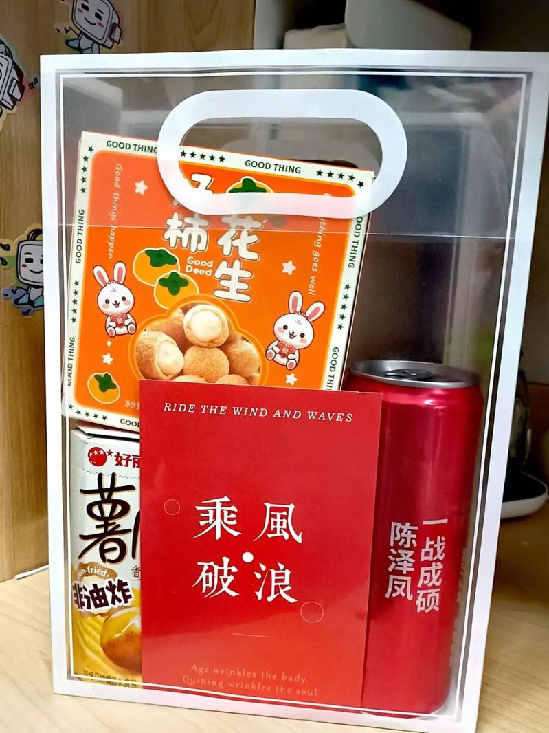 接着,刘兴平书记与徐俊增院长为同学们送上了精心准备的考研冲刺大礼包,为大家加油鼓劲。伟德国际1946bv官网为同学们定制了专属可乐、牛奶、毛毯、文具等礼物,对同学们予以好“柿”发生、一举夺“葵”、“逢考必过”、冲“鸭”等最真挚的祝福,祝愿每一位同学考研顺利、一战成硕!