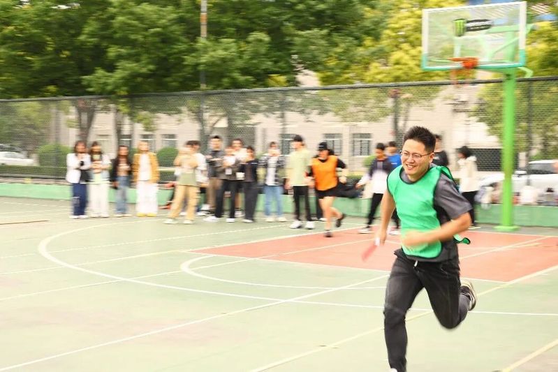 跳大绳环节考验着团队的协作与节奏感。长绳翻飞如浪,甩绳的选手抡出呼呼风声,参赛者连蹦带跳挤作一团:有人鱼跃跳过绳圈,有人缩脖蛙跳钻过,队伍起伏跳跃,围观的师生笑成一片。