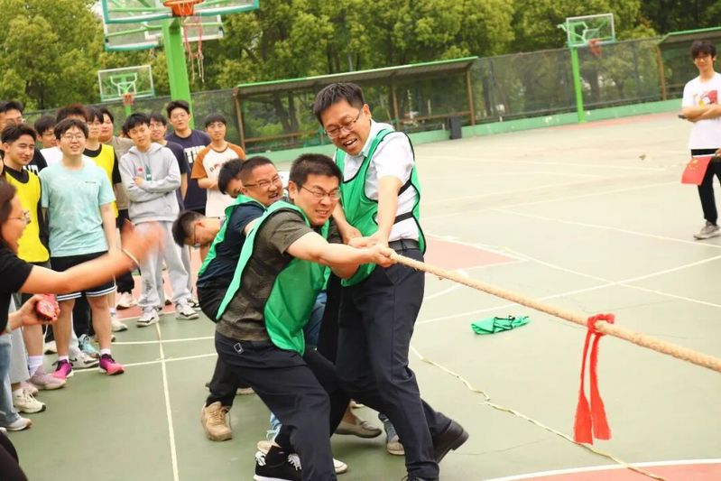 接下来的拔河比赛将现场气氛推向了高潮。随着裁判的哨声响起,双方队员开始了激烈的较量。绳子中间的红布条左右摇摆,每一次移动都牵动着大家的心。队员们齐声呐喊,喊出了力量,喊出了团结。在一片震耳欲聋的呐喊声中,获胜的队伍欢呼雀跃,而失利的队伍也毫不气馁,相互鼓励,展现出了顽强拼搏、永不言弃的体育精神。