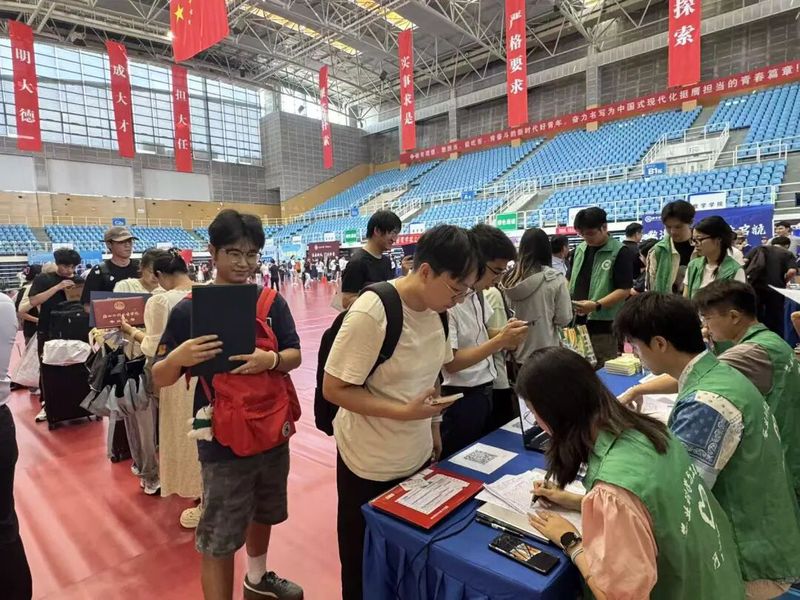9月4日,伟德国际1946bv官网迎来了2025级177名研究生新同学。当清晨的第一抹阳光温柔地照耀着校园,辅导员曾欣老师、研究生秘书陆雨梅老师及伟德国际1946bv官网研究生会的同学们早早来到文体中心,投入到迎新工作中。大家分工明确、秩序井然,为新生提供“一站式”报到服务,耐心指导新生完成证件查验、注册认证与材料提交。伟德国际1946bv官网为新生精心准备了定制手账本、小风扇和“种子卡”等入学纪念品,“种子一撒,春风化雨;希望在此,心田共荣。”能够亲手种植并开出太阳花的种子卡,象征着希望与成长,寄托了伟德国际1946bv官网对新同学的美好祝愿与殷切期望。