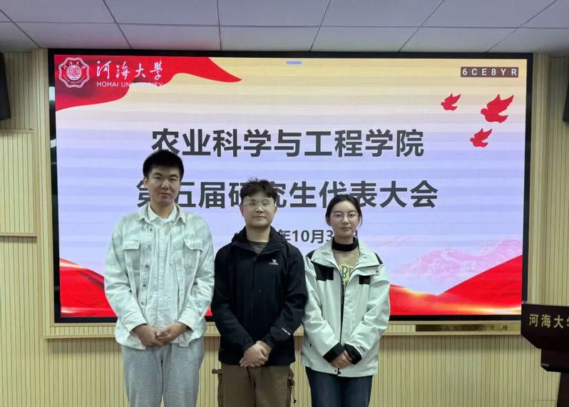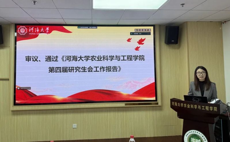 河海大学研究生会主席团成员钱家豪同学致辞,他代表校研究生会对大会的顺利召开表示热烈的祝贺,对农工院研究生会过去一年的各项工作表示充分的肯定,同时,希望农工院研究生会继续秉持“全心全意为同学服务”的宗旨,不断拓宽服务领域、提升服务效能,努力开创研究生会工作高质量发展的新局面。