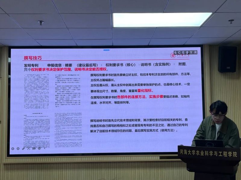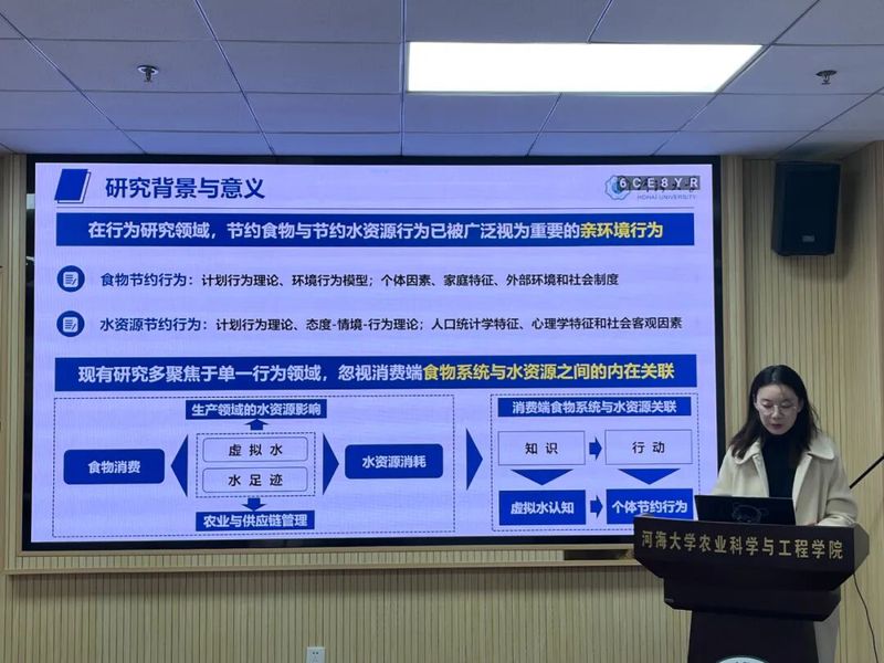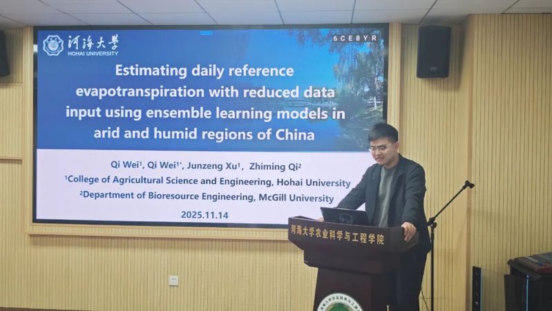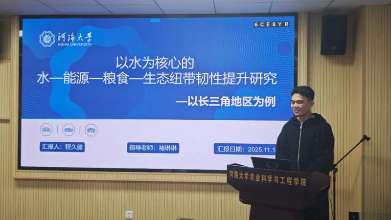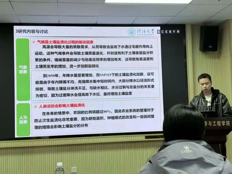 论坛上,参会同学围绕“农情与水”主题依次展开汇报。邱皓南同学聚焦未来情景下黄河三角洲土壤盐渍化与有机碳动态预测,结合两种未来情景运用反向传播神经网络进行时空变化预测,为区域“碳中和”提供科学支撑;韦琦同学汇报基于集成学习模型估算日参考蒸散量的研究,发现CatBoost模型综合表现最优,为不同气候区提供可靠估算方案;张盛芊同学以河海大学5853名学生为对象,分析虚拟水认知对食物-水资源节约协同行为的影响机制,为校园资源节约教育提供依据;刘子豪同学结合自身4项专利受理经验,系统讲解专利写作技巧,重点阐述发明专利撰写结构与关键要点;程久健同学研究长三角水—能源—粮食—生态耦合系统韧性,提出以水权改革为关键抓手推动区域可持续发展;李百慧同学汇报其在《Plants-Basel》发表的成果,探讨玉米秸秆生物炭对农田土壤氮磷转化、微生物多样性及酶活性的影响,为缓解连作土壤养分障碍提供有效途径。