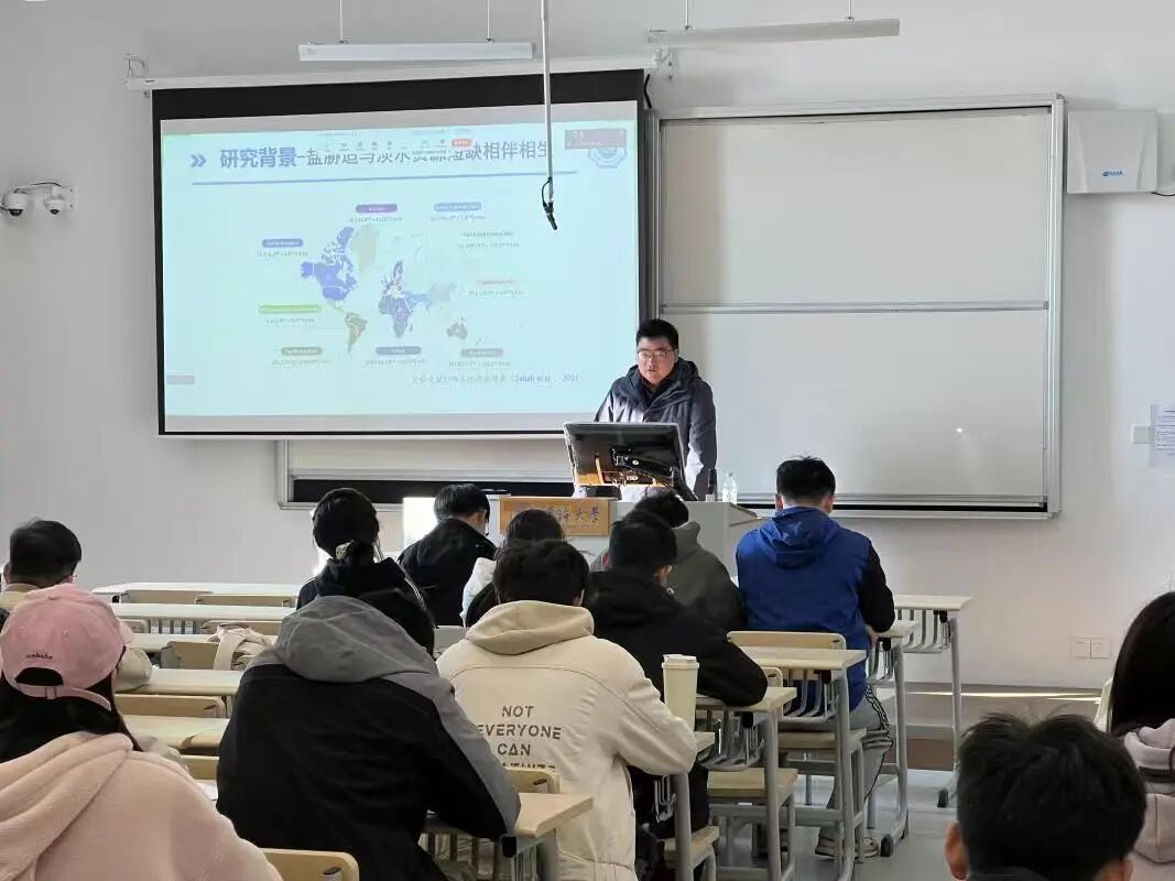 针对滩涂开发与生态保护矛盾,他提出“分区治理”理念,建议在潮间带保留生态湿地功能,高地片区实施精准改良,兼顾耕地扩容与生物多样性保护。同时,孙老师还展示了耐盐碱水稻、油葵等作物在改良土壤中的应用成效。孙老师与同学们围绕盐碱地改良成本优化、抗逆作物品种推广等问题展开交流。