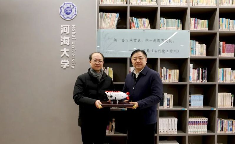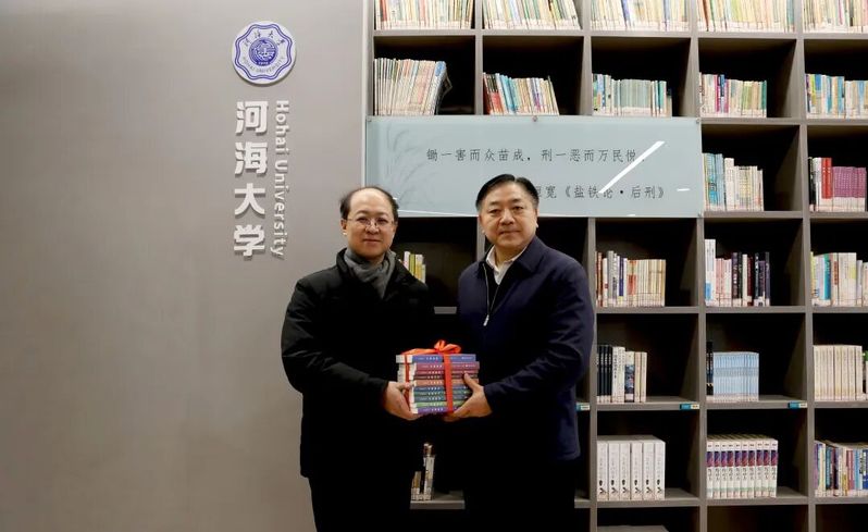 以书香传递情谊,用知识联结未来。“河海大学书架”正式进驻海安高级中学图书馆,我校首批捐赠的126册图书,涵盖校史沿革、学科前沿、人物纪实与人文通识等多个领域。其中包括,展现学校办学历程的《百十河海 赓续辉煌——河海大学110年办学成果荟萃》,展示河海大学师者风采的《一生一事——我与夏老师的故事》,反映水利学科前沿的《长江保护与绿色发展研究丛书》《治水安澜 人水共生:中国现代大型水利水电工程》,记述河海人物事迹的《汪胡桢与佛子岭水库》《壮哉,港建!》《实业报国的拓荒者:张謇的实践研究》,融汇水文化与人文精神的《中国河湖的红色记忆》《水与诗歌》等代表性读物。图书兼具专业性与可读性,旨在帮助海中学子深入了解河海大学的办学传统、学科实力与文化内涵,激发其对相关领域的兴趣与向往,也为其拓宽视野、提升素养、涵养品格提供优质资源。同时,进一步巩固了两校之间的育人纽带与文化桥梁,为海安高级中学作为全国书香校园的建设引入了“活水”。捐赠仪式上,我校还向海安高级中学赠送喜报和蛟龙号模型,彰显两校紧密合作成果。