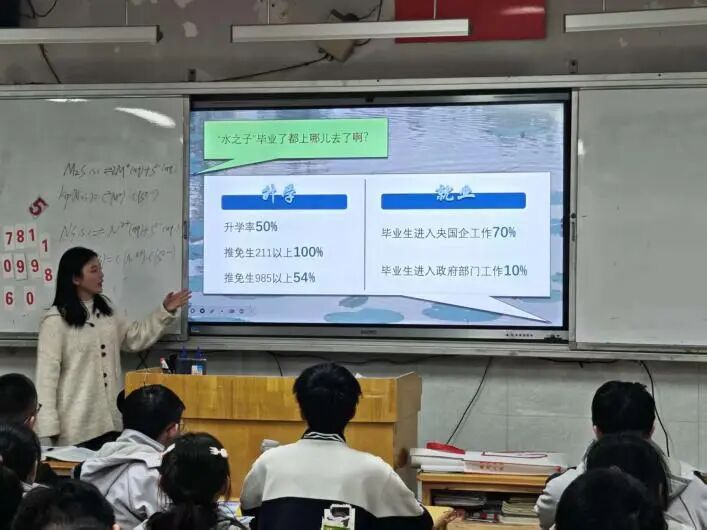 宣讲会上,团队成员胡婧、唐贺铭两人化身“河海代言人”,通过精彩的PPT演示和生动的校园视频,多角度地展示了河海大学的百年底蕴与时代活力。从厚重的学校历史,到优美的校园环境与舒适的住宿条件;从丰富的课余活动到有吸引力的毕业去向,再到近年的招生政策与录取情况,学长学姐们的分享既全面又真实,为学弟学妹们勾勒出一幅鲜活的大学生活图景,在他们心中播下了向往的种子。